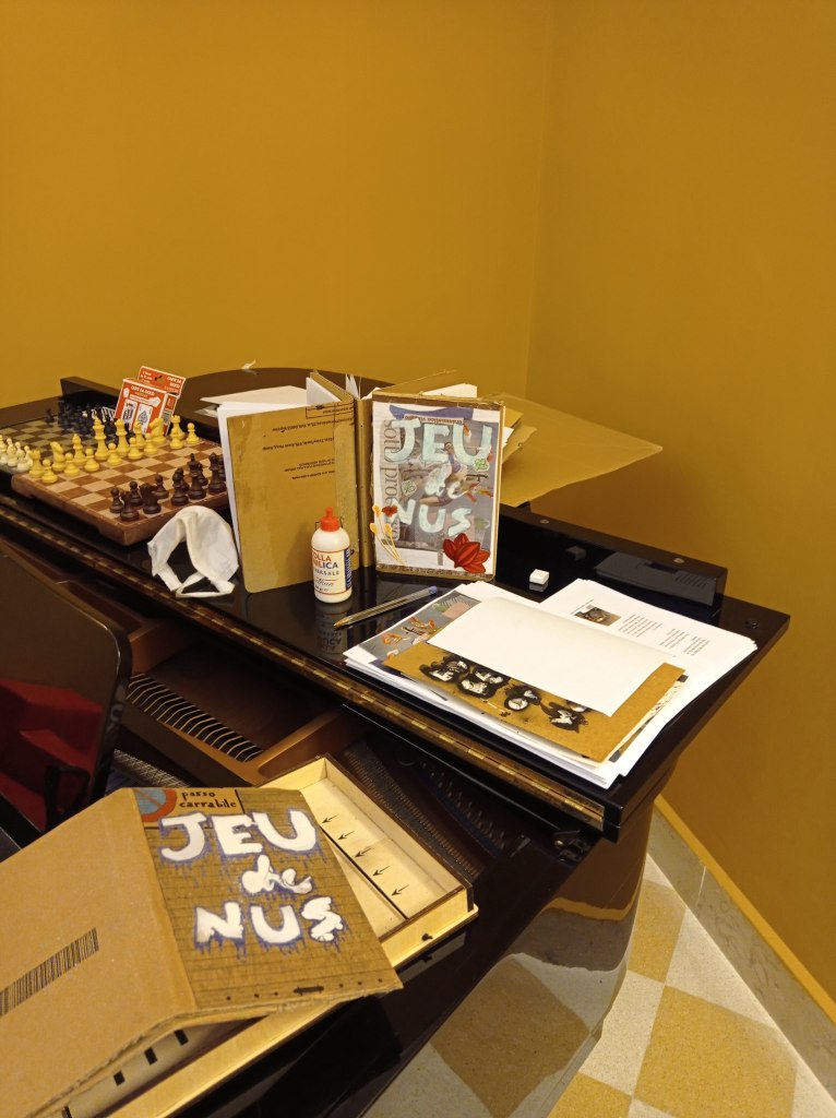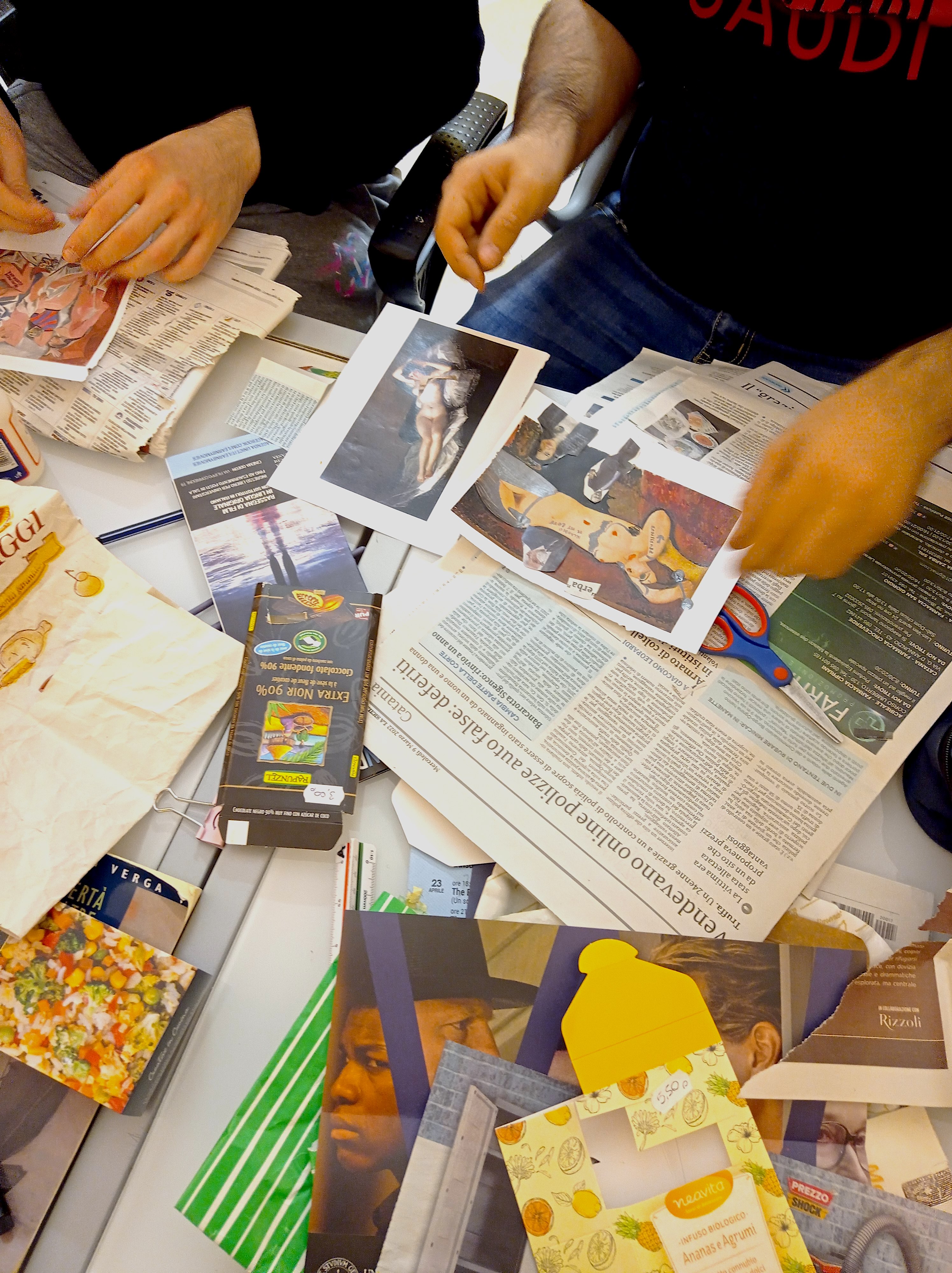 Il libro è composto da rielaborazioni di nudi della grande storia dell’arte, tramite i metodi del collage e del disegno. Durante la sessione di laboratorio, le studentesse e gli studenti hanno riflettuto sulle politiche della rappresentazione dei corpi nella storia dell’arte e sul rapporto, spesso di timore reverenziale, con i classici, in qualche modo esorcizzato e attraversato tramite il gioco della rielaborazione.