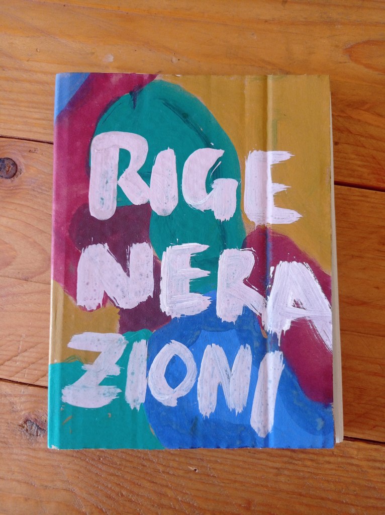 Le pagine che seguono, rilegate in un libro artigianale realizzato con cartone riciclato e carta ecologica, raccolgono alcuni dei risultati — i più trascrivibili — dei sei incontri calatini di RIGENERAZIONI. Sono il frutto di tante mani, di tante teste pensanti e soprattutto del clima di condivisione aperta e orizzontale che si è creato durante gli incontri del circolo.