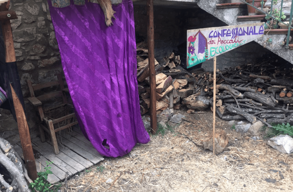 Il confessionale dei peccati ecologici è uno spazio performativo allestito durante i lavori della Plenaria del Movimento Rete Permacultura Sicilia a Polizzi Generosa, il 25-27 giugno 2021.
